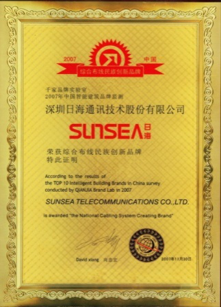 2007年11月29日~30日,yabo亚博公司智能综合布线受邀前往上海光大会展中心酒店,参加由千家网筹办的“2007年第八届中国国际建筑智能化峰会暨颁奖典礼”,获得了“布线民族创新品牌”特别奖项。